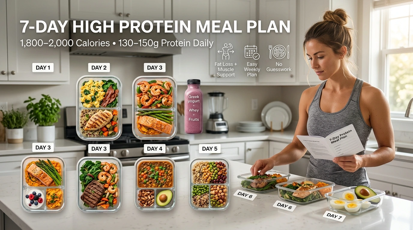 We’ll cover the science without getting boring about it, go through the best high protein foods, and hand you a complete 7-day high protein meal plan you can start using this week. No guesswork, no complicated macros math just a clear, workable plan.